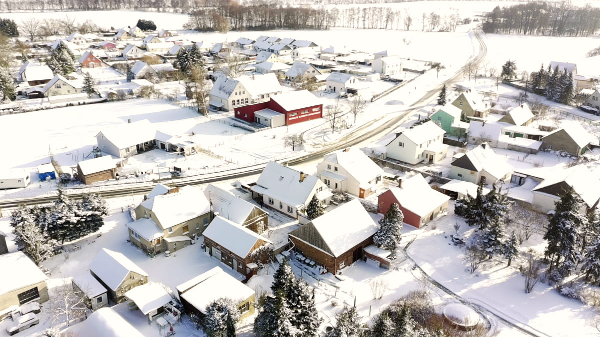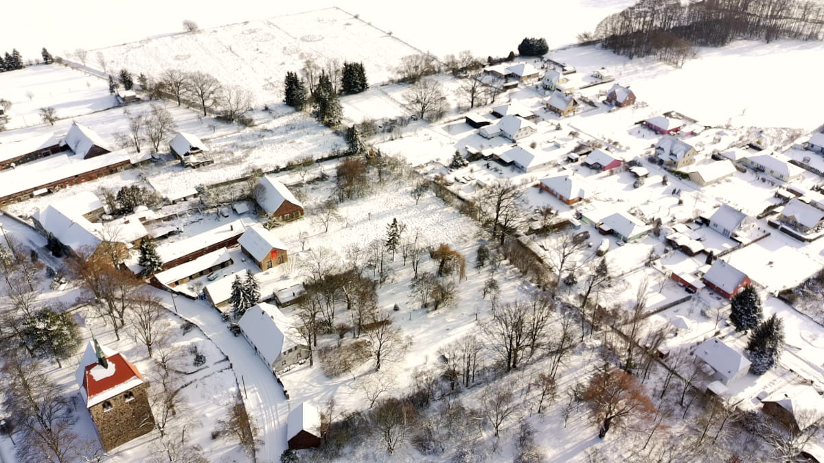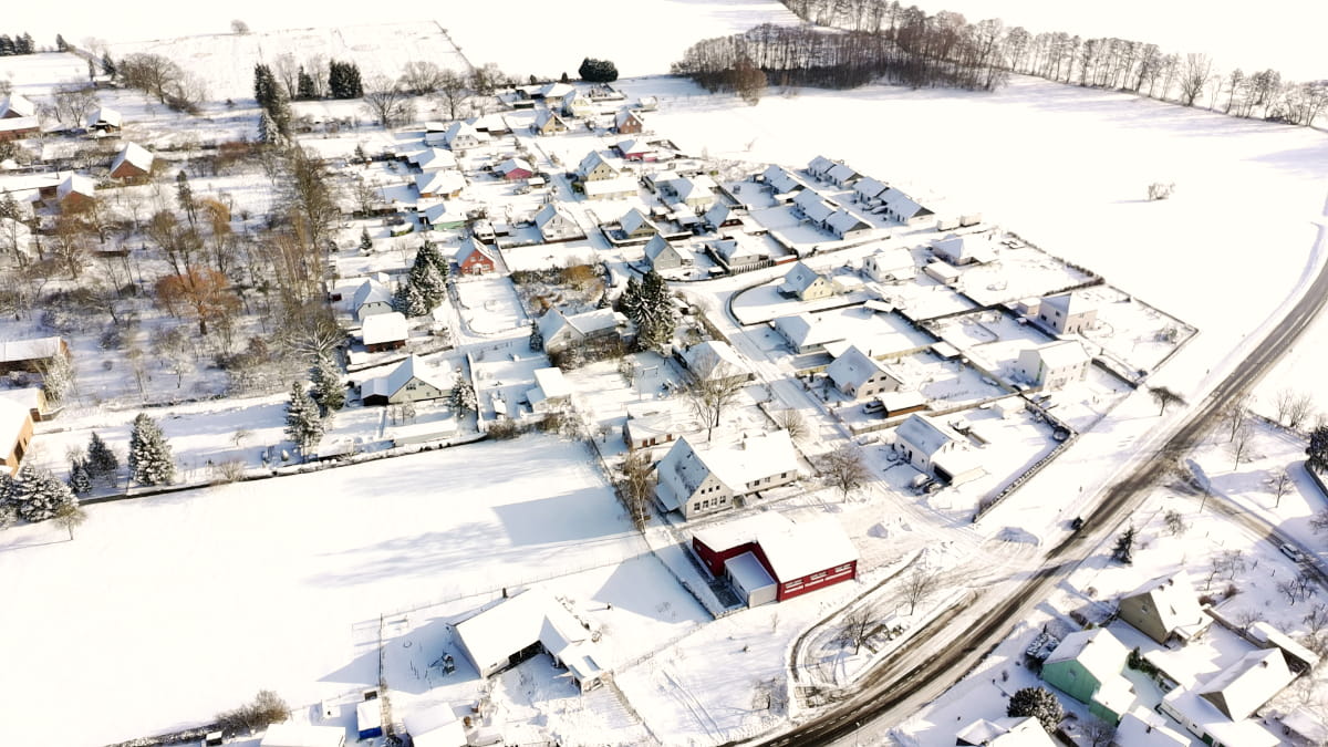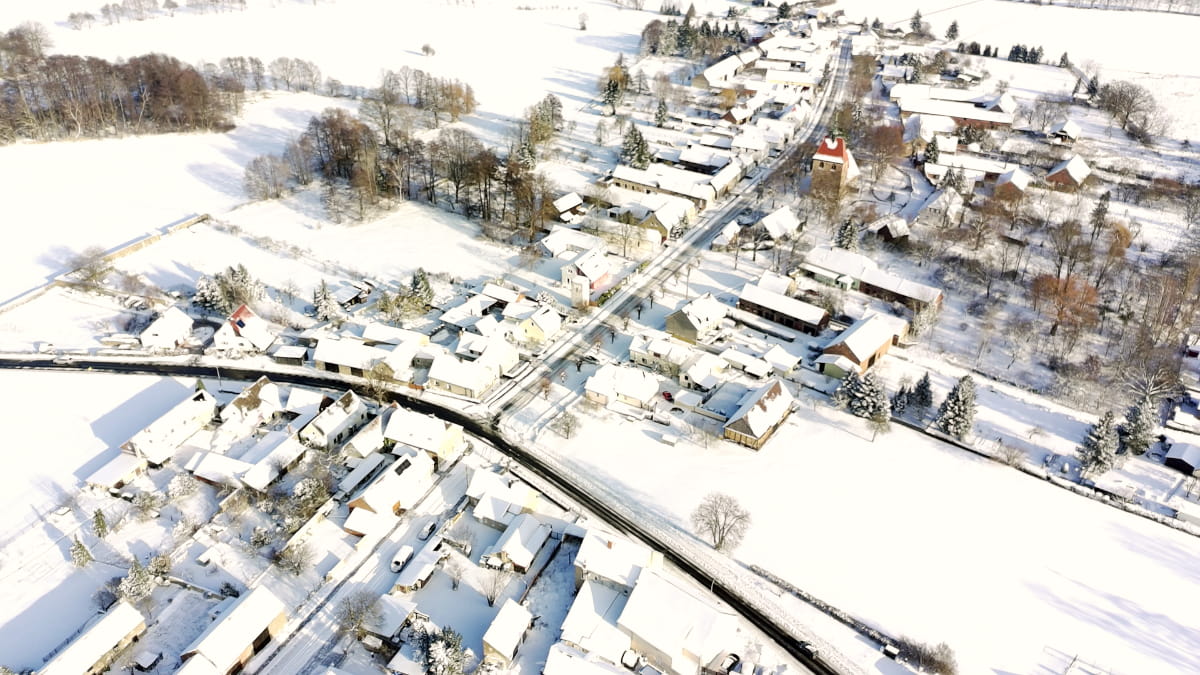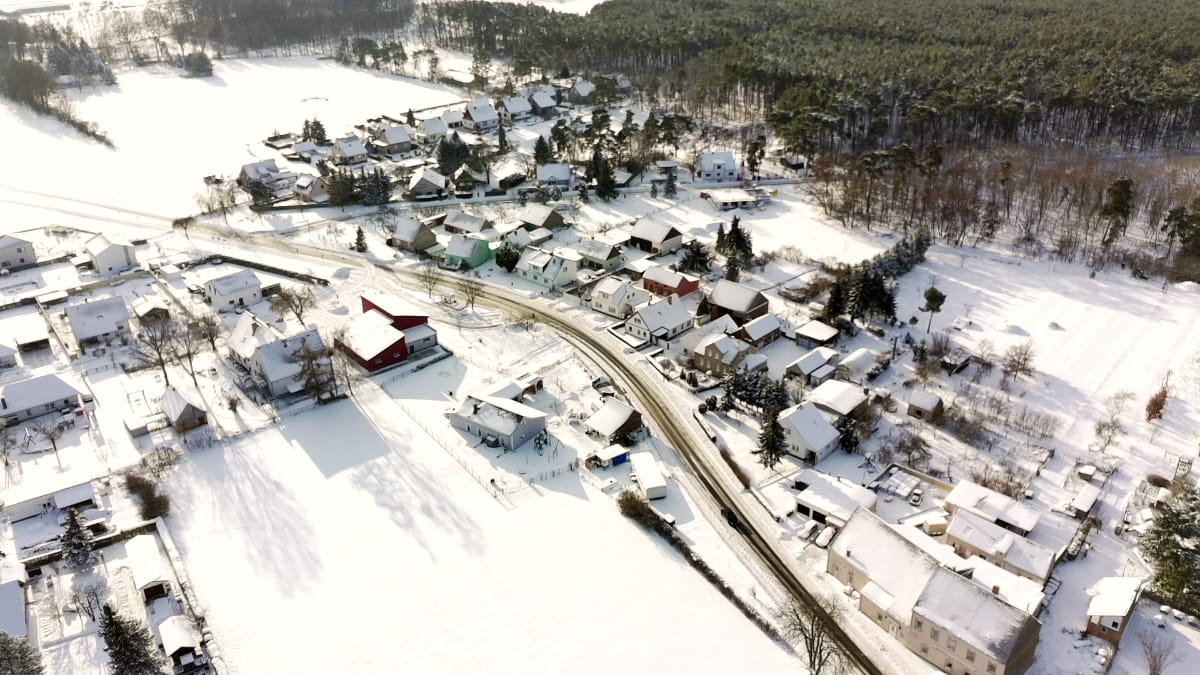 Der Winter hat Gießmannsdorf in diesen Tagen in eine besondere Ruhe getaucht. Die Drohnenaufnahmen zeigen unseren Ort im Schnee und lassen die winterliche Atmosphäre aus der Luft erleben.